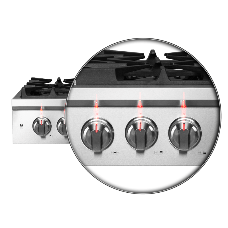 - Sealed Dual-Ring Brass Burners can achieve high heat searing or delicate simmering control
