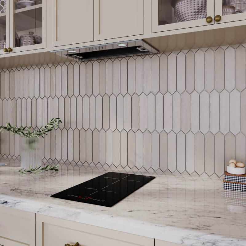- The frameless design seamlessly integrates into your kitchen with its sleek modern style.