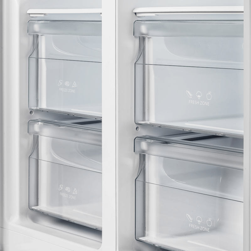 - The Side-by-Side design ensures that the majority of your food items are conveniently located at eye level, allowing for easy visibility and quick access to your desired items.