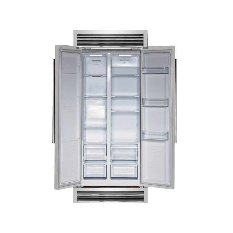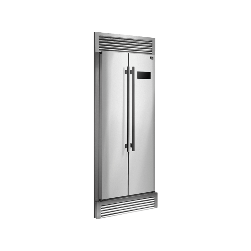 The Forno 33” Salerno 15.6 Cu.Ft. capacity side-by-side frost-free refrigerator with decorative grill trim comes equipped with the latest technology, including an Intelligence chip temperature control system that adjusts temperatures to keep food and beverages at their optimal level. A simple Led touch panel allows for easy access and control of all features. Fresh food section has a 9.54 cu.ft. capacity with three adjustable glass shelves for organizing and storing items, as well as 2 crisper drawer and 3 door bins for additional storage. Freezer section has 6.08 cu.ft. capacity also includes three adjustable shelves and 2 pull-out drawers for easy access, along with 3 door bins. With all these features, you'll be able to keep your food organized and fresh. All Forno refrigerators are backed by an iron clad 2-year warranty for your satisfaction and an E-star energy rating. Skip the high price tags without sacrificing quality and performance. Lower the cost of living with Forno.