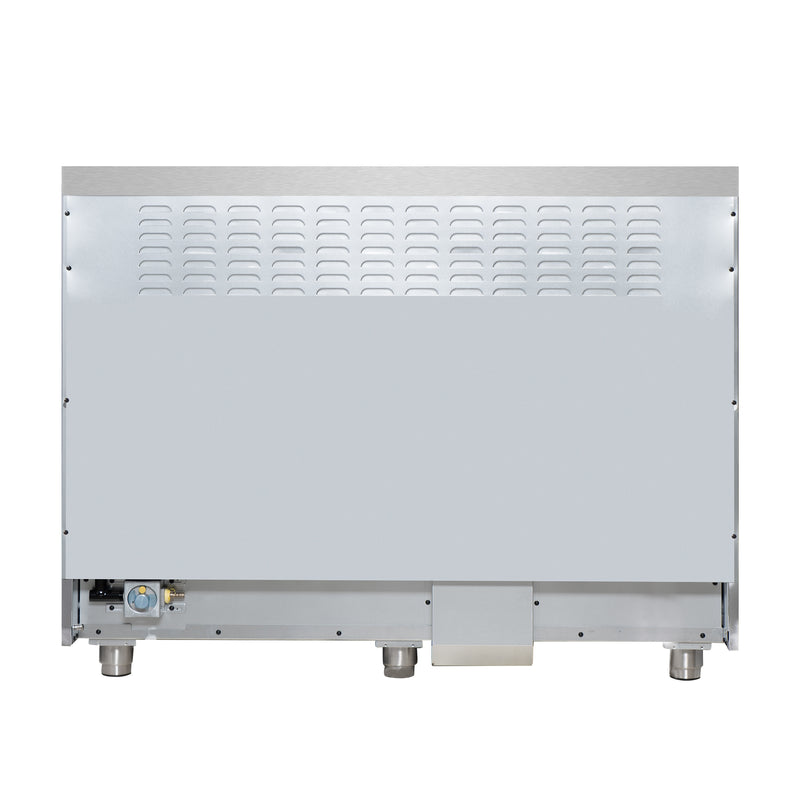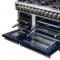 The Massimo 48 inch dual fuel range offers serious cooking power for high-performance kitchens. With 8 sealed gas burners and durable matte cast iron grates, it’s built for everything from rapid boiling to low simmers. The spacious 6.58 cu. ft. electric oven features true convection, multiple bake and broil modes, and a built-in air fryer basket for healthier meals. Finished in a bold black with antique brass handles, it also includes a wok support, griddle, and a steam-cleaning function for easy maintenance. The speckled blue enamel oven interior adds style and visibility. LP convertible and designed for either freestanding or built-in installation.