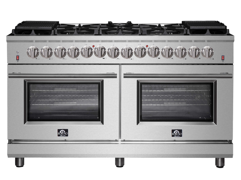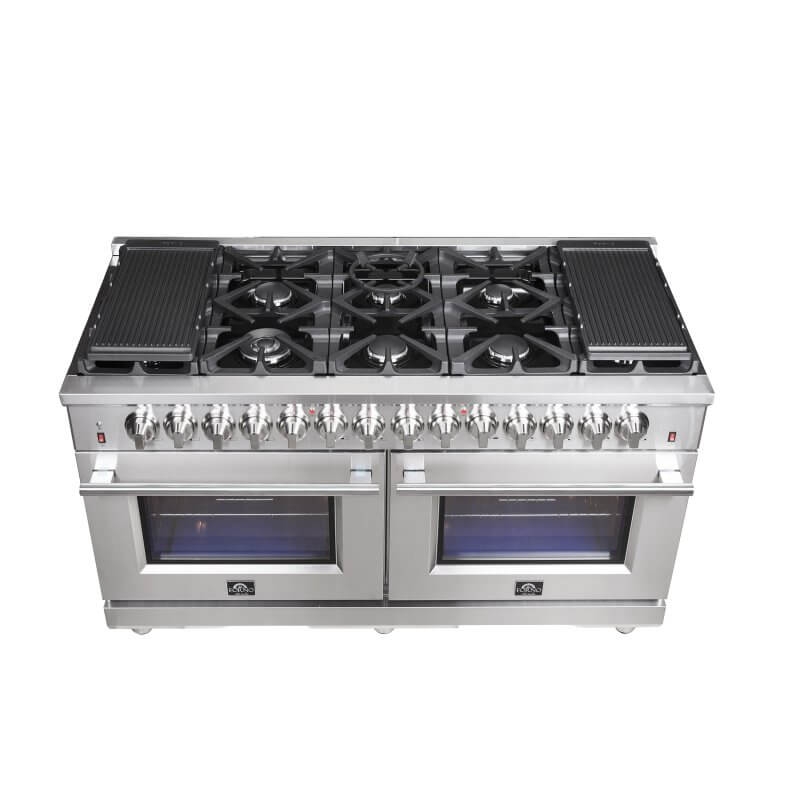 60" Forno Massimo Dual Fuel Range with 8.64 Cu.Ft. True Convection Double Ovens in Stainless Steel - FFSGS6125-60