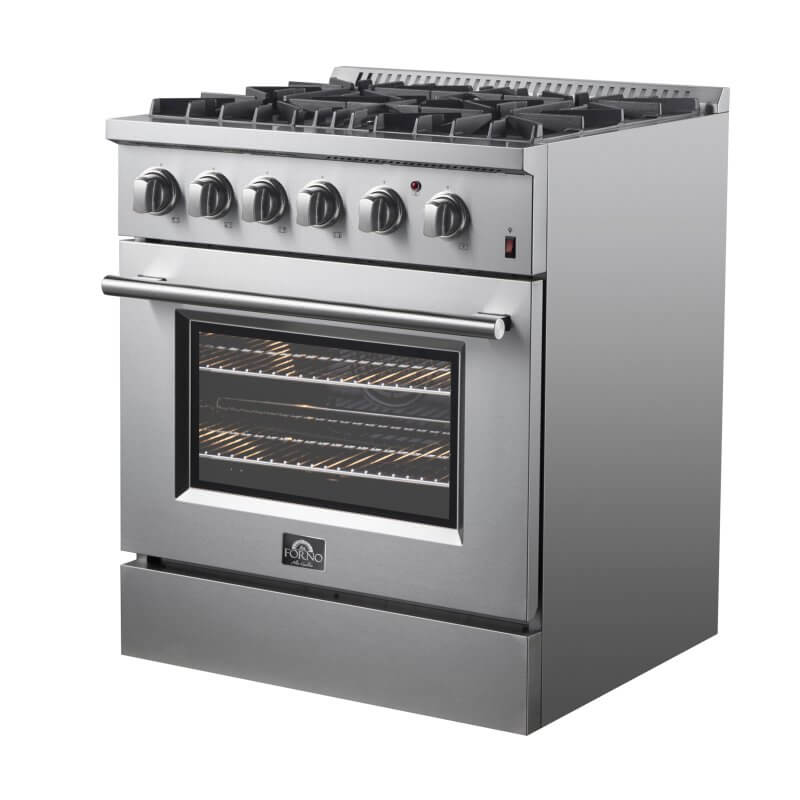 30" FORNO Marco Dual Fuel Range with 4 Sealed Burners and 4.32 Cu. Ft. True Convection Oven in Stainless Steel - FFSGS6197-30