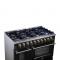 - Deep recessed black enamel range top cavity contains spills for quick clean-ups