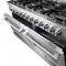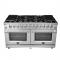 The Forno Massimo 60 Inch Gas Range harmonizes professional style and 304-grade stainless steel durability. Its 10 sealed burners, totaling 142,000 BTU, include two precision 20,000 BTU dual-ring burner that can simmer at 1,000 BTU. Continuous cast iron grates ensure stability on the enamel surface. Two convection ovens with a total capacity 8.64 cu.ft with 30,000 BTU Total Broil and Bake output each. Both ovens have an impressive blue enamel interiors allowing for easy cleaning and 3-layer glass oven door window provides both heat retention and an unobstructed view. It features 2 telescopic racks per oven, an air fryer kit, a wok support, two reversible griddle, an LP conversion kit, and durable zinc-coated metal knobs. Elevate your kitchen with performance, convenience, and enduring elegance.