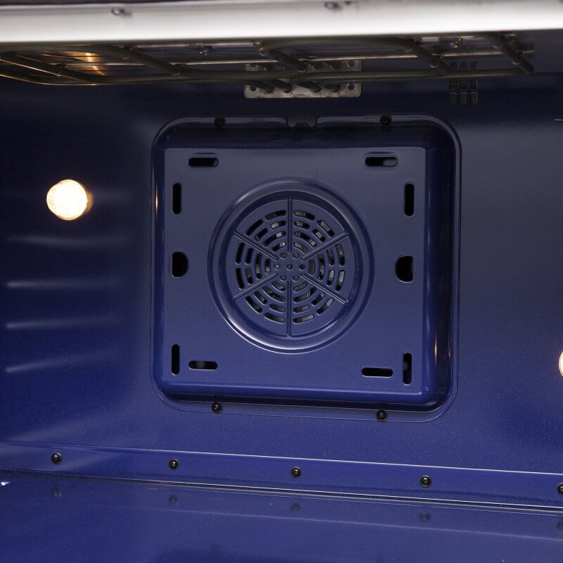 - 5.36 cu.ft speckled blue true convection oven with 6,300 Watts total broil and bake output