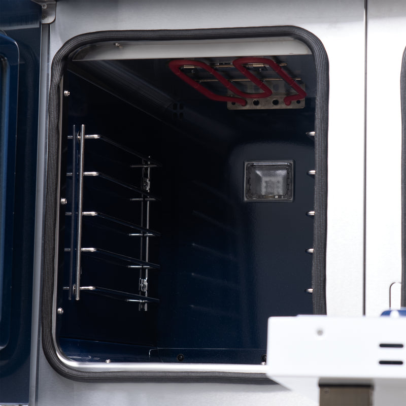 - French Door Design: Simplifies loading and unloading large dishes, improves oven accessibility, and reduces the risk of burns