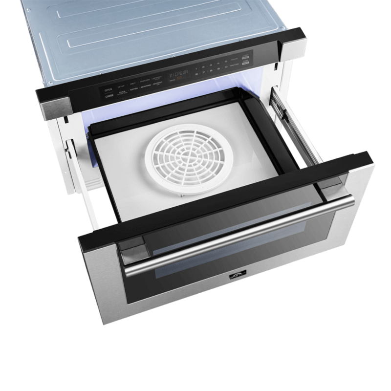- Convenient auto-touch feature allows for easy opening and closing of the microwave drawer with just a simple push of a button.