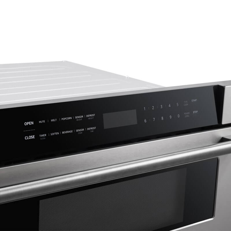 - Convenient auto-touch feature allows for easy opening and closing of the microwave drawer with just a simple push of a button.