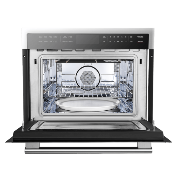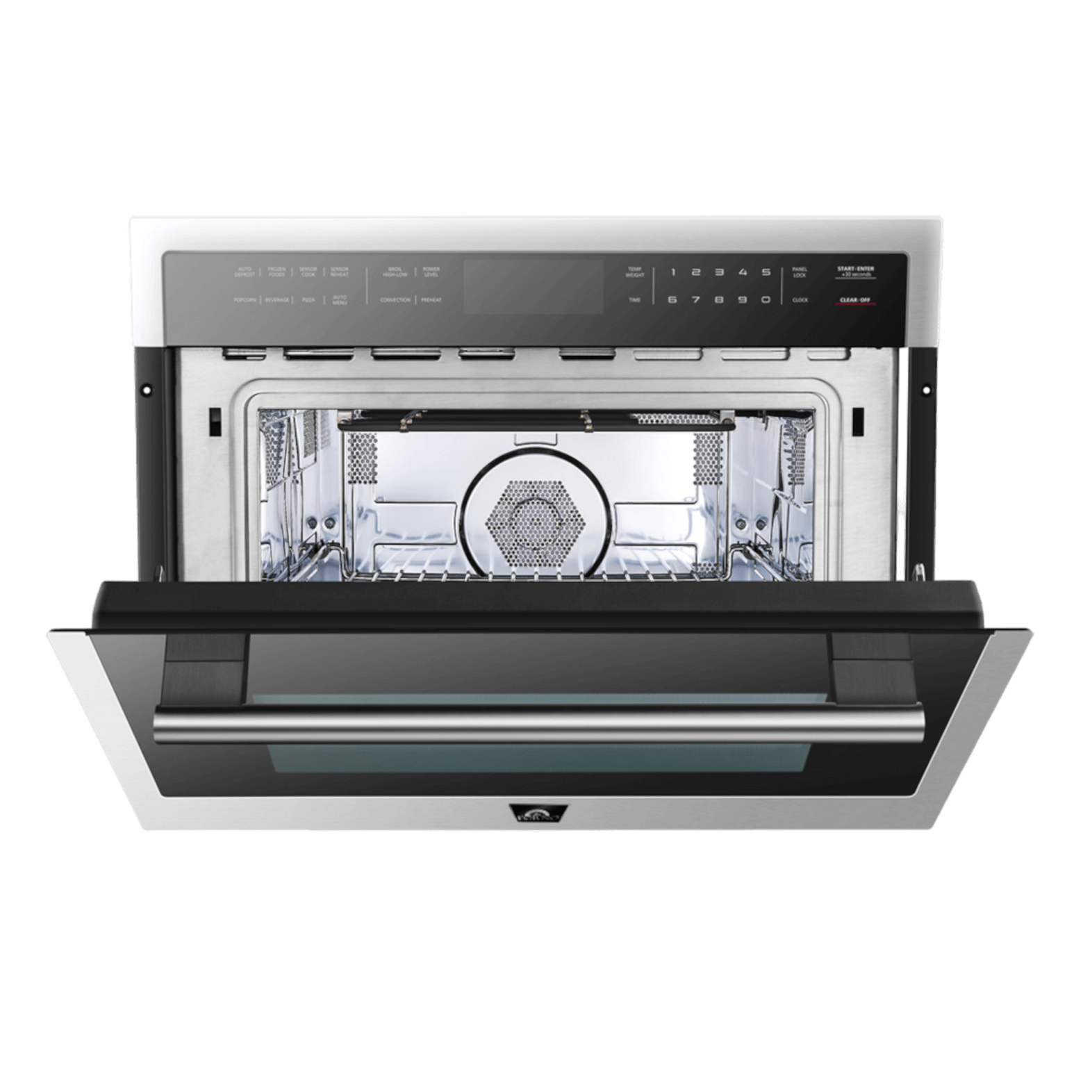 The Forno Oliena a stylish and practical 24-Inch 1.6 cu.ft. Microwave & Convection Oven. Its stainless-steel interior makes cleaning a breeze, while the easy-to-use controls let you seamlessly switch between microwave and oven functions. With 1,000 watts of cooking power, you can boil water in just 1 minute and 50 seconds using standard microwave settings. The glass touch controls and LED display make it simple to navigate through various microwave modes like defrost, popcorn, beverage, sensor cooking, or auto menu. In oven mode, enjoy the versatility of true convection at 1,700 watts, along with a broil function of 1,750 watts and a bake element of 600 watts—perfect for cooking individual dishes without having to use the main oven. Plus, the Rapid Preheat mode reduces waiting times, ensuring your meals are ready faster. Experience convenience and efficiency with our multi-functional microwave and convection oven combo.