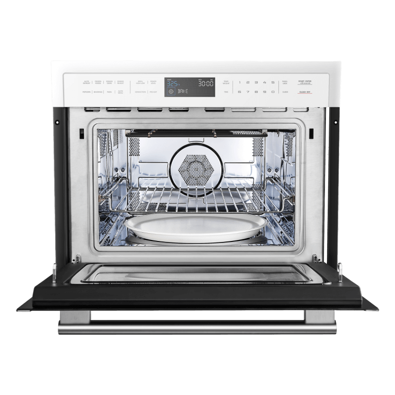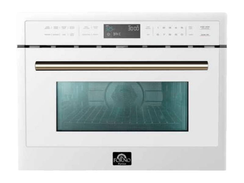 The Forno Oliena a stylish and practical 24-Inch 1.6 cu.ft. Microwave & Convection Oven. Its stainless-steel interior makes cleaning a breeze, while the easy-to-use controls let you seamlessly switch between microwave and oven functions. With 1,000 watts of cooking power, you can boil water in just 1 minute and 50 seconds using standard microwave settings. The glass touch controls and LED display make it simple to navigate through various microwave modes like defrost, popcorn, beverage, sensor cooking, or auto menu. In oven mode, enjoy the versatility of true convection at 1,700 watts, along with a broil function of 1,750 watts and a bake element of 600 watts—perfect for cooking individual dishes without having to use the main oven. Plus, the Rapid Preheat mode reduces waiting times, ensuring your meals are ready faster. Experience convenience and efficiency with our multi-functional microwave and convection oven combo.