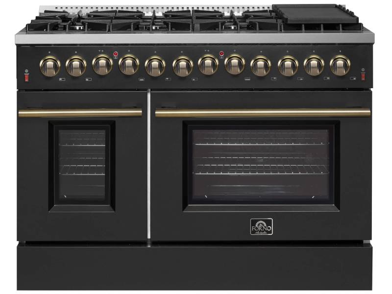 48" Forno Galiano Dual Fuel 6.58 cu.ft. 8 Burners Double Ovens Range - FFSGS6156-48BLK