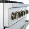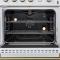Infuse your kitchen with timeless elegance and reliable performance with the Marco 30 Inch Alta Qualita Gas Range in white with antique brass accents. Tailored for creative cooks, this range features 4 sealed burners with a total of 37,000 BTU, including a dual-ring burner for tasks like simmering soups or searing meats. The 4.32 cu.ft. convection oven delivers evenly cooked dishes, helping you achieve perfection every time. Durable cast iron grates ensure cookware stability, and the oven’s sleek black enamel interior is easy to clean. Let the Marco elevate your home cooking. Lower the cost of living with Forno.
