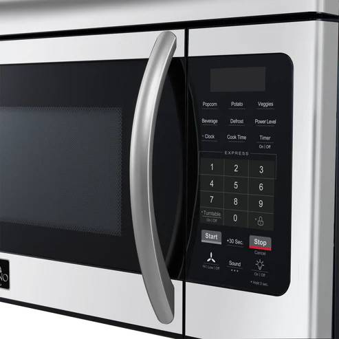 The Forno Scalo Over the Range 30 Inch Microwave offers reliable performance with versatile cooking options, including speed cooking and convenient auto menu programs for popcorn, beverages, vegetables, potatoes, and defrosting. Designed in smudge-resistant stainless steel with a bright digital display and LED lighting, it delivers both style and functionality. The durable plastic handle provides a comfortable, cool-to-touch grip that’s built for everyday use without compromising the premium look. With vertical, horizontal, or recirculating air discharge and a two-speed blower system (105/300 CFM), this undercabinet or wall-mounted microwave ensures effective ventilation while saving counter space.