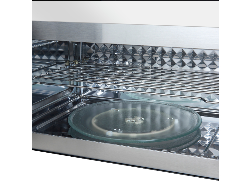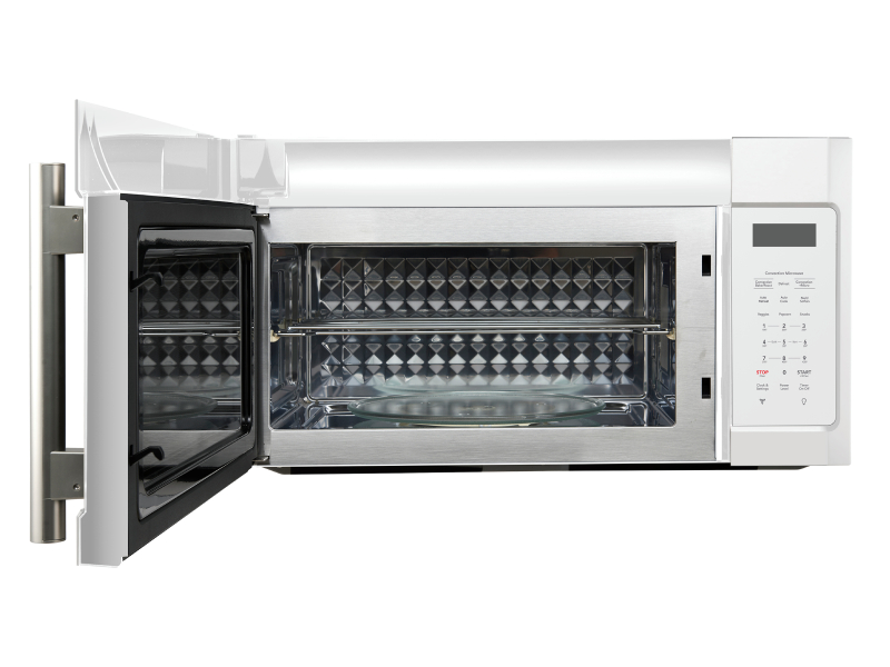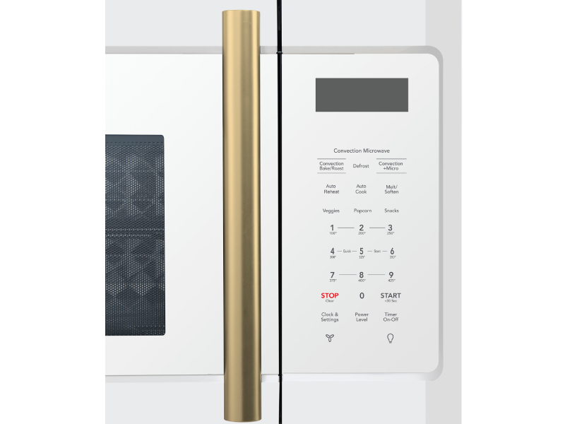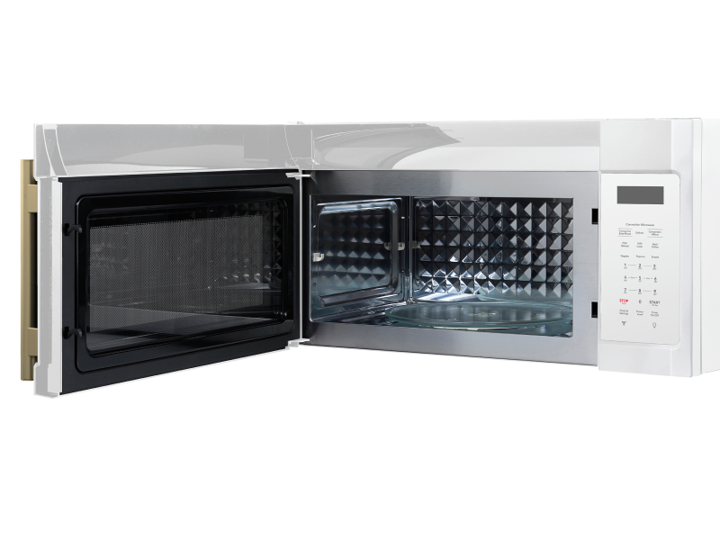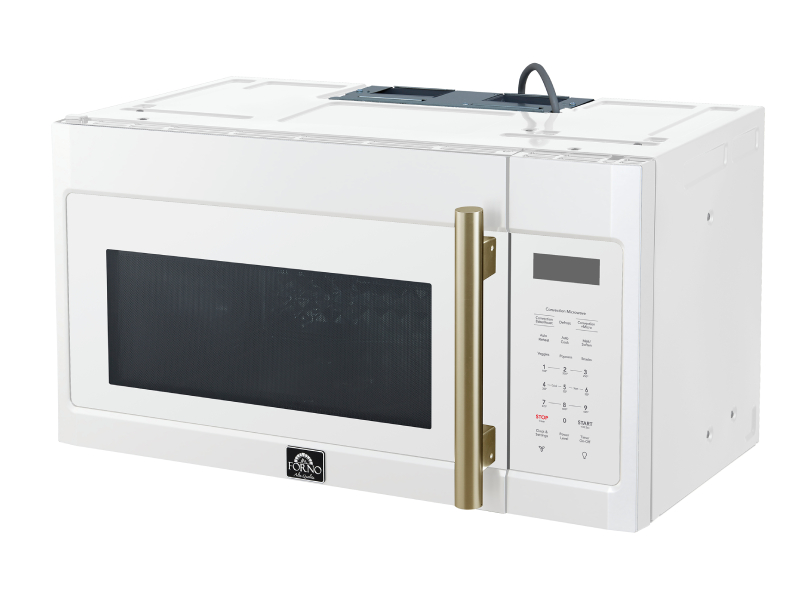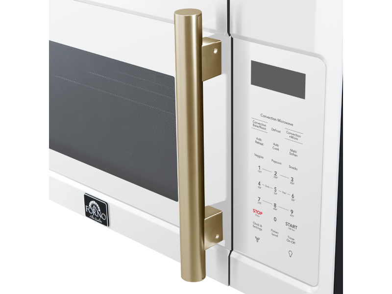 The Fornace 30 Inch Over the Range Microwave in White combines microwave, convection, and speed cooking functions in one versatile appliance. Designed to be smudge-resistant, it features a sleek digital display, LED lighting, and an easy to clean washable filter. The touchpad controls and auto menu programs make everyday cooking simple, while multistage and cook time options offer precision. A durable plastic handle in antique brass ensures a comfortable, cool to touch grip that’s built for everyday use. With vertical, horizontal, and recirculating air discharge options, plus a powerful two-speed blower system (105/300 CFM), this undercabinet or wall-mounted microwave is a modern solution for efficient and reliable cooking.