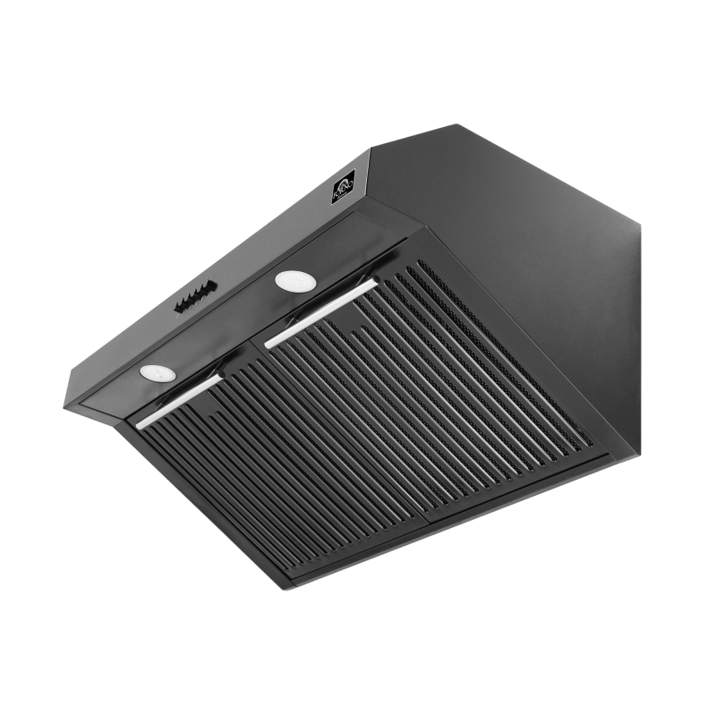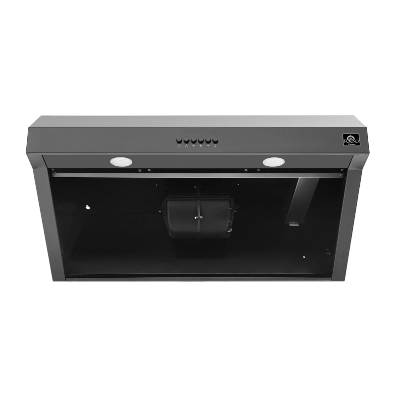30″ FORNO Bari Espresso Under Cabinet in Black Range Hood with additional Brass Filter Handles - FRHUC5255-30BLK