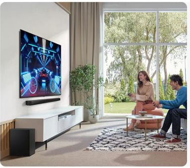 With Q-Symphony, AI separates voice and background sounds for playback through the optimal channel. Now you get crisper dialog and more immersive 3D surround sound, playing through your TV speakers and soundbar in complete synergy.