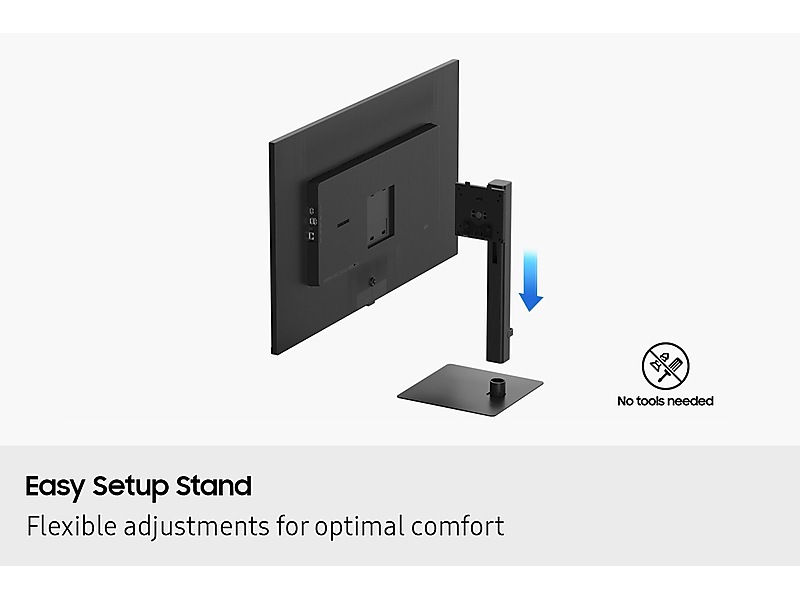 The Easy Setup Stand effortlessly creates an ideal workspace without any tools or screws. When it's time to change things up, simply push a button and enjoy flexible convenience.