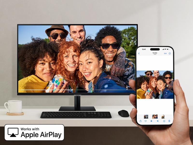Wirelessly connect Apple devices to your Smart Monitor and view content on a bigger screen. With AirPlay integration, you can easily enjoy media or mirror apps, documents and websites from an iPhone, iPad or Mac.9