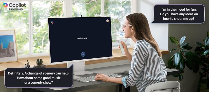 Whether you're looking for answers to complex questions, learn a new language, or prep for an interview —just ask and Copilot responds with smooth, natural-like voice-based answers. Enjoy effortless handsfree conversation right on your monitor.