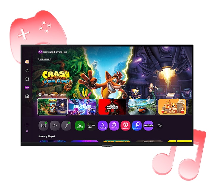 Samsung Gaming Hub is the ultimate home for gaming. Instantly play the biggest games from top streaming partners, with no PC or console needed. Discover new games or replay old favourites all in one place. 1