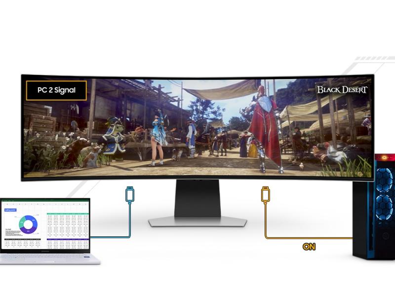 A curved 49" screen in 32:9 wraps around to immerse you into games.