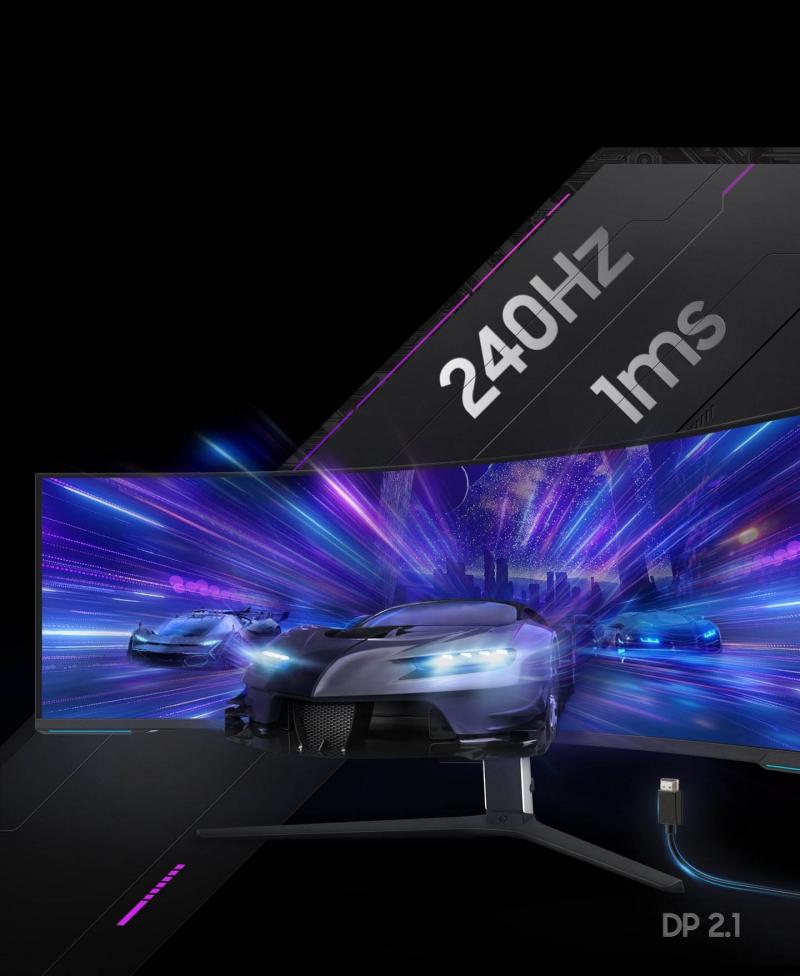 * For the world's first full DUHD and 240Hz ultra high performance support, the graphics card being used must support DP 2.1 (UHBR 13.5 and above) or HDMI 2.1 (FRL 12Gbps). Actual specifications and support may vary by graphics card. Please refer to your graphics card specifications for more details. ** "1 ms" means one milliseconds which is the range of avg. response time between 1.00ms to 1.99ms truncated to whole number. *** Based on GtG measured under internal test conditions. Results may vary by content and monitor settings (requires ‘Extreme mode' setting). **** GtG (Gray to Gray) measures the time taken for a monitor pixel to change from one gray value to another.