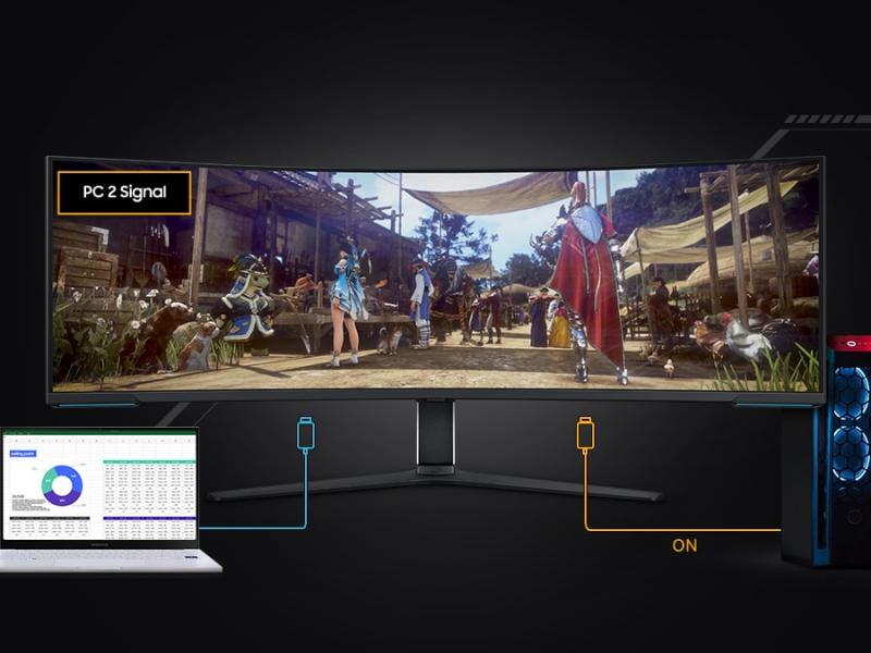 The world's first dual UHD monitor wraps around you with a super-wide 57" screen and 1000R curvature.