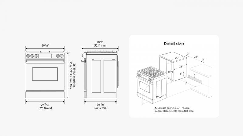 | Net Size (W x H x D) (inches) | (29 15/16) x (36 ~ 36 3/4) x (28 3/8) |