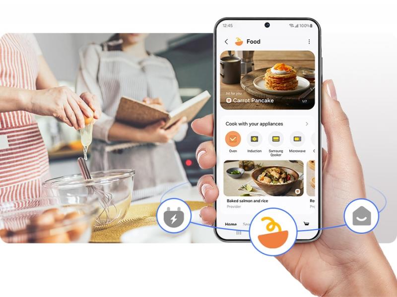 * Available on Android and iOS devices. A Wi-Fi connection and a Samsung account are required. ** A Wi-Fi connection is required. Bixby is Samsung’s brand of artificial intelligence (AI) / Internet of Things (IoT) voice assistant. Service availability may vary by country. Bixby recognizes certain accents and dialects of English (US, UK, Indian), Chinese, Korean, French, German, Italian, Spanish, and Portuguese. A Samsung account log-in and Wi-Fi connection are required. *** SmartThings Food's services, excluding recipe languages, are available in 40 languages, including English, French, German, Italian and Spanish. **** The recipe language is available in 7 countries. Other countries will be added soon.