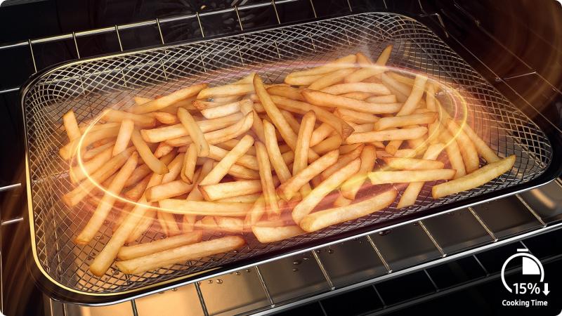 * Based on internal testing. Results may vary depending on the type of food and individual use. While the cooking performance of Air Fry Max and the previous Air Fry mode is comparable, Air Fry Max reduces cooking time by approximately 15% compared to its predecessor. Testing with frozen potato fries, where cooking time decreased from 30 minutes to 25.5 minutes.** Compared to deep frying.