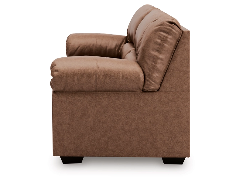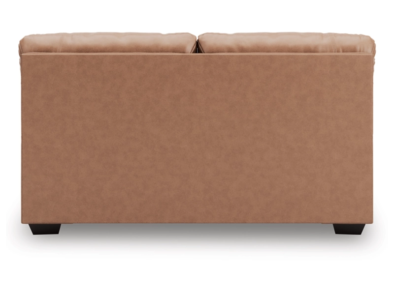 Modern comfort never looked so good. Sporting supremely soft yet durable cushions accented with high-fashion jumbo stitching, this stunning loveseat is the ultimate choice in comfortably cool, contemporary style. Its caramel-hued faux leather indulges with an upscale feel and wows like the real thing.