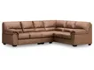 New look to a great looking frame, your choice sofa group or sectional. Offering loose non-reversible seat cushion. Upholstered in a great faux leather and accented with jumbo decorative stitching. Accent Tri-Block Legs.