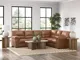 Modern comfort never looked so good. Sporting supremely soft yet durable cushions accented with high-fashion jumbo stitching, this stunning sectional is the ultimate choice in comfortably cool, contemporary style. Its caramel-hued faux leather indulges with an upscale feel and wows like the real thing.