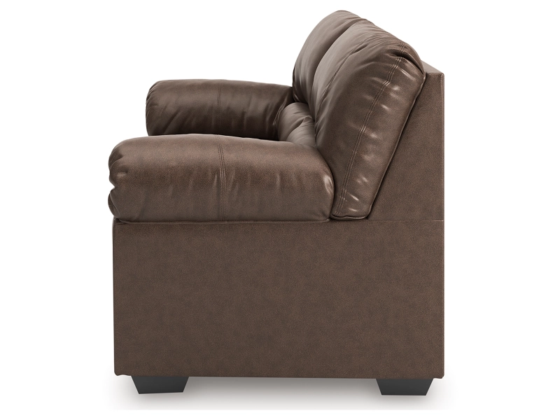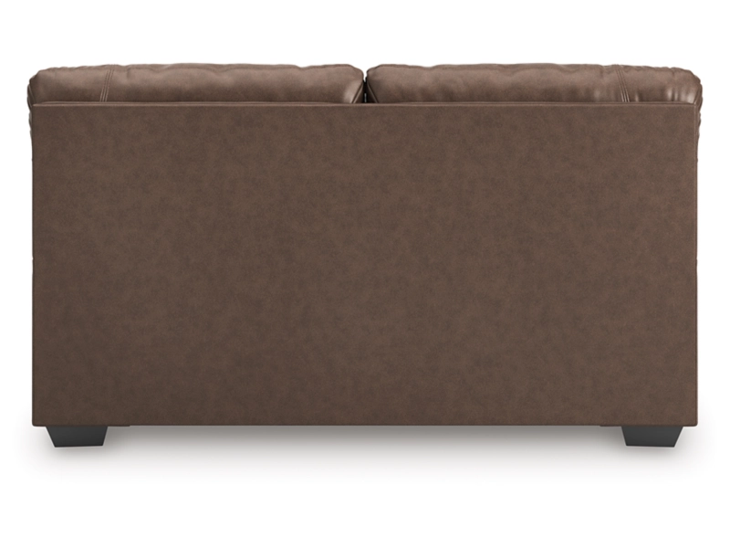 Modern comfort never looked so good. Sporting supremely soft yet durable cushions accented with high-fashion jumbo stitching, this stunning loveseat is the ultimate choice in comfortably cool, contemporary style. Its umber-hued faux leather indulges with an upscale feel and wows like the real thing.