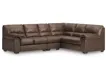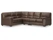 New look to a great looking frame, your choice sofa group or sectional. Offering loose non-reversible seat cushion. Upholstered in a great faux leather and accented with jumbo decorative stitching. Accent Tri-Block Legs.