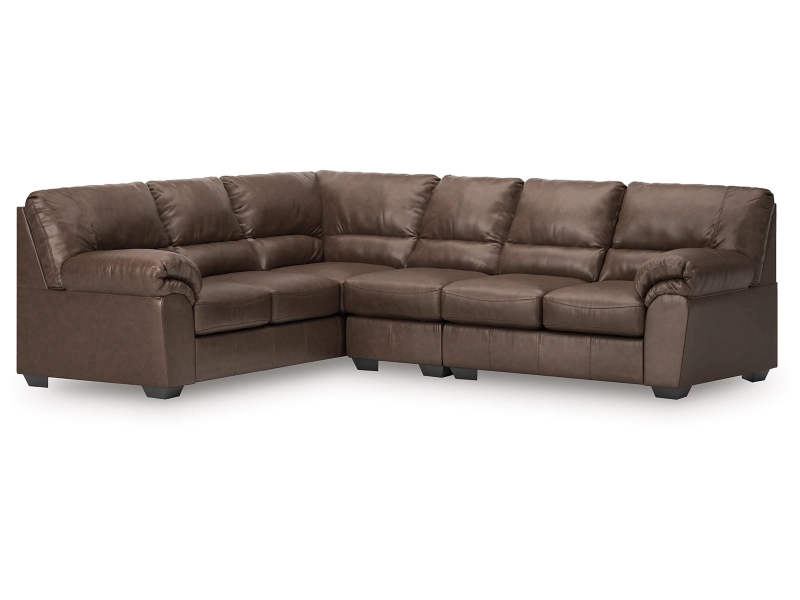Modern comfort never looked so good. Sporting supremely soft yet durable cushions accented with high-fashion jumbo stitching, this stunning sectional is the ultimate choice in comfortably cool, contemporary style. Its umber-hued faux leather indulges with an upscale feel and wows like the real thing.
