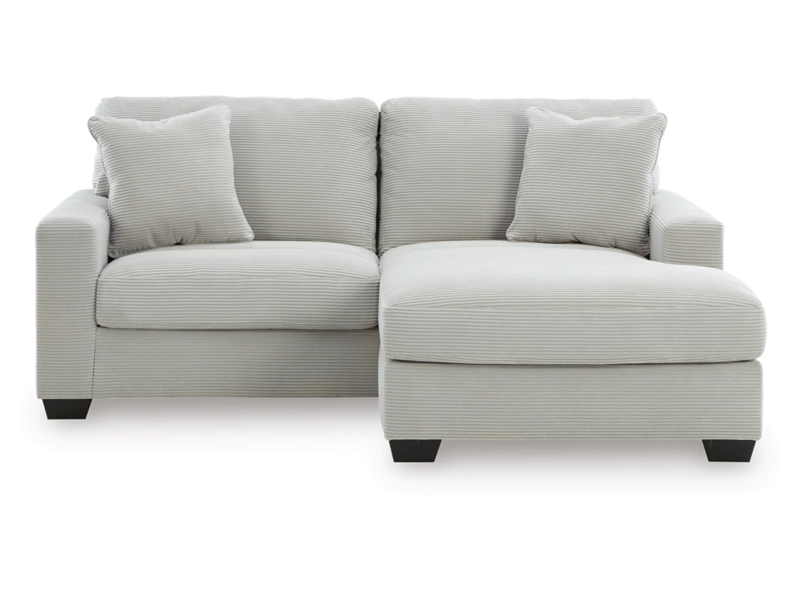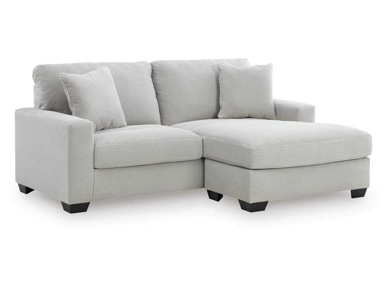 The crisp neutral hue and striking design details of this sofa chaise create a living room that expertly reflects your modern taste. For irresistibly cool textural appeal, the ultra-soft fabric is enhanced by a small-scale corded look. With a clean-lined silhouette complete with track arms, this sofa chaise allows you to take a trend-right approach to everyday living.