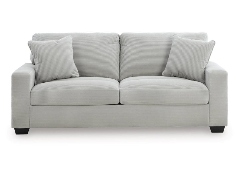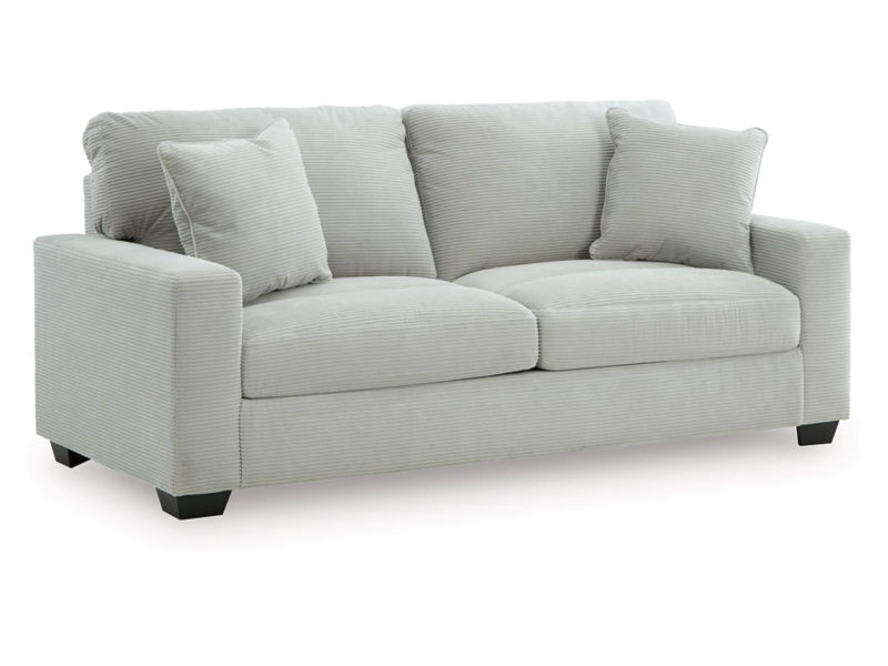 The crisp neutral hue and striking design details of this sofa create a living room that expertly reflects your modern taste. For irresistibly cool textural appeal, the ultra-soft fabric is enhanced by a small-scale corded look. With a clean-lined silhouette complete with track arms, this sofa allows you to take a trend-right approach to everyday living.