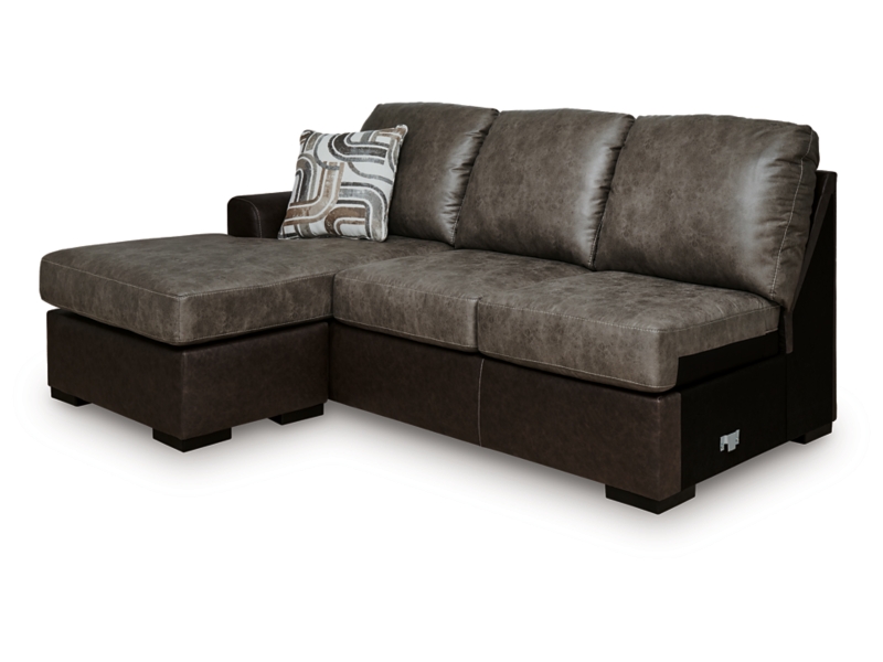 This left-arm facing sofa chaise is made with faux leather upholstery. Pairs with other items in the series to make a sectional.