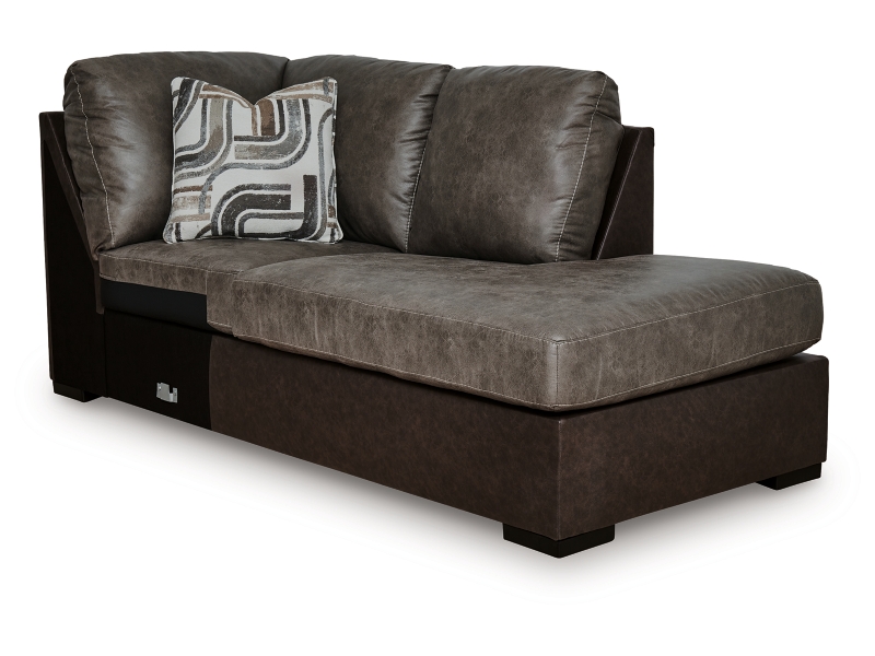 This right-arm facing corner chaise is made with faux leather upholstery. Pairs with other items in the series to make a sectional.