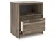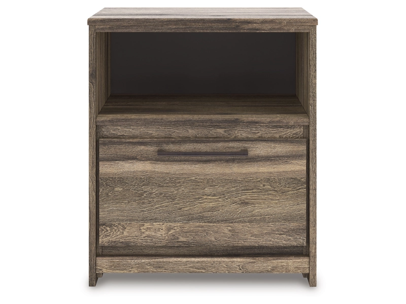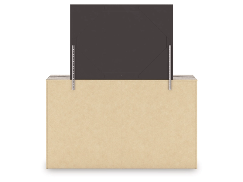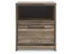 Weathered brown finish over replicated Oak grain with authentic touch. Contemporary handles in an antiqued gunmetal finish. Cases feature faux linen finished drawer interiors. Modern bookcase headboard includes a dimming LED light under the shelf. Side roller glides for smooth operating drawers. Queen and king storage footboard (54S,56S) requires the B100-13 or B100-14 roll slats. Mirror (36) has the versatility to mount on the dresser or to the wall horizontally or vertically. Slim profile dual USB chargers located on the back of the nightstand top and the side of the headboards. Queen (57) and King (58) headboards can attach to a bolt-on metal bed frame B100-31 or B100-66 respectively. Safety is a top priority, clothing storage units are designed to meet the most current standard for stability, ASTM F 2057 (ASTM International). Drawers extend out to accommodate maximum access to drawer interior while maintaining safety.