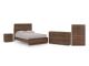 Contemporary design. Made with MDF substrates and decorative paper laminate. The collection laminate features a replicated Walnut wood grain with a beautiful high-low contrast for a rich brown wood tone. The cases and bed are designed with rounded waterfall tops and frames that offer high-end sophistication. Drawer interiors feature a clean modern appearance with decorative wood grain paper laminate. Metal center guides, and English dovetail construction. The stylish bed features a floating headboard panel with a LED back-light feature with a 3-way dimmer switch that operates from both sides of the bed. Foundation box spring not required.