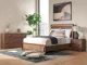 Contemporary design. Made with MDF substrates and decorative paper laminate. The collection laminate features a replicated Walnut wood grain with a beautiful high-low contrast for a rich brown wood tone. The cases and bed are designed with rounded waterfall tops and frames that offer high-end sophistication. Drawer interiors feature a clean modern appearance with decorative wood grain paper laminate. Metal center guides, and English dovetail construction. The stylish bed features a floating headboard panel with a LED back-light feature with a 3-way dimmer switch that operates from both sides of the bed. Foundation box spring not required.
