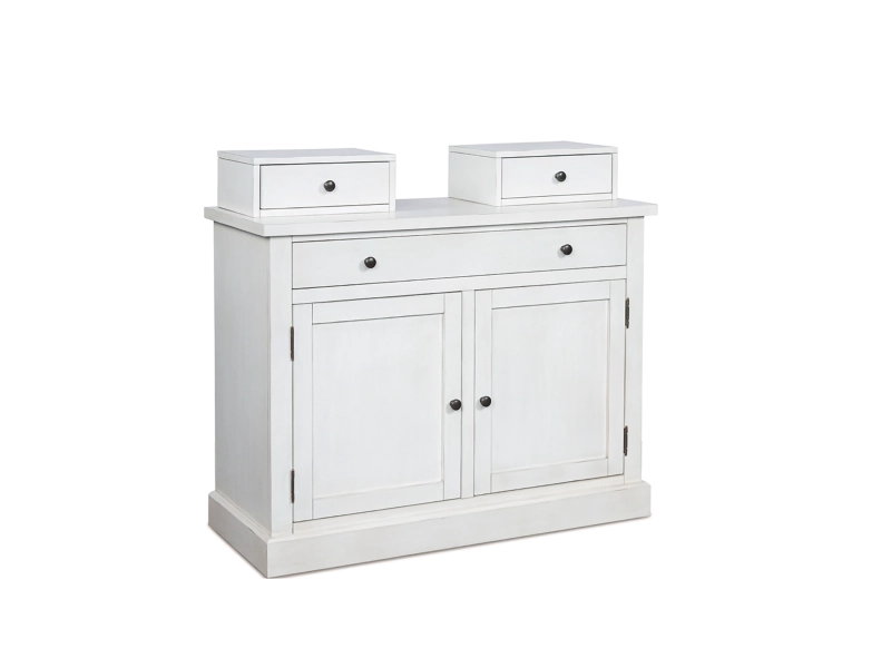 Relaxed living and cozy comfort—that’s what traditional farmhouse design is all about. And what better way to embrace your love of rustic country style than with this baker's rack base. Celebrating the beauty of simplicity, its ample drawer and shelving marry functionality with classic appeal for a fresh feel. The spacious cabinets invite endless hideaway possibilities. Pair this piece with the matching bakers rack hutch for even more storage options.
