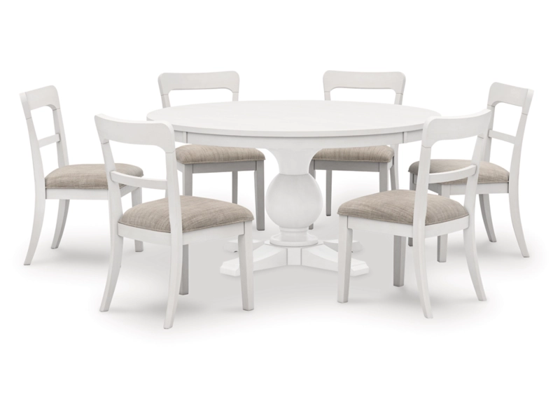 Relaxed living and cozy comfort—that’s what traditional farmhouse design is all about. And what better way to embrace your love of rustic country style than with this dining package. Celebrating the beauty of simplicity, this set marries functionality with classic appeal for a fresh feel.