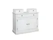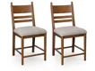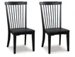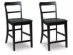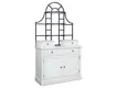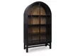 This Traditional Farmhouse collection blends hardwood solids, wood veneers, and MDF with eclectic finishes for mix-and-match styling. Dining table options include an 8-seat (D824-25) and 6-seat counterheight (D824-13) with thick mango wood veneer tops and chunky turned legs in a medium brown wood-tone. A 60" round dining table (D824-50T/B) features a thick top and antique white cast resin pedestal. For a modern farmhouse look, the D824-55T/B trestle table offers a chunky Mindi wood veneer inlay top and a painted black base. Chair options include stylized ladder-back (black D824-07, medium brown D824-09; counterheight black D824-724, medium brown D824-924), vintage-inspired bistro (black D824-01, antique white D824-02; counterheight black with wood seat D824-124, antique white wood seat D824-224), and spindle back (black D824-05, medium brown D824-06), all with adjustable levelers. A tall arched curio with three fixed shelves and metal-framed doors (antique white D824-276, two-tone black/medium brown D824-376, medium brown D824-476), and an accent cabinet (D824-186) with tall door cabinets, reversible wine shelves, and bottom drawers.
