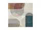 Machine woven, printed abstract design in shades of rust, teal, ocher, gray, navy and tan. 5mm pile. Polyester faux fur, backed with TPR/canvas blend. Machine washable. Rug pad recommended.