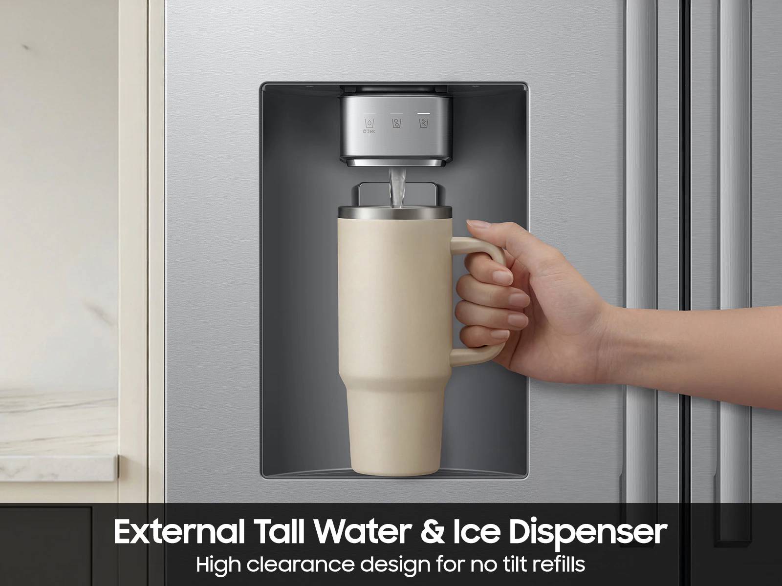 Get extra room to fill large bottles, pitchers and tumblers for easier, no-tilt refills - with ice always ready.