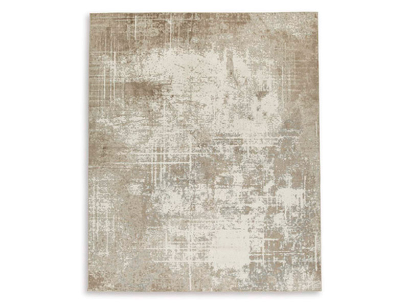 Machine woven, abstract design in tan, brown, gray and cream. 4mm pile. Polyester, backed with cotton. Machine washable. Rug pad recommended.